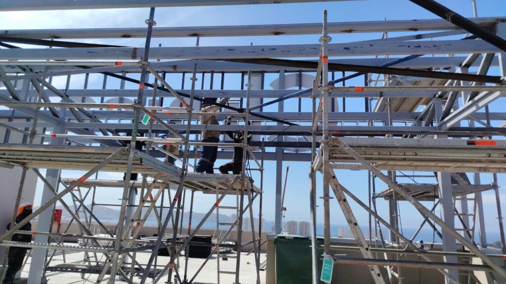 Montaje seguro en zonas de riesgo operacional, bajo normativas estrictas de seguridad.